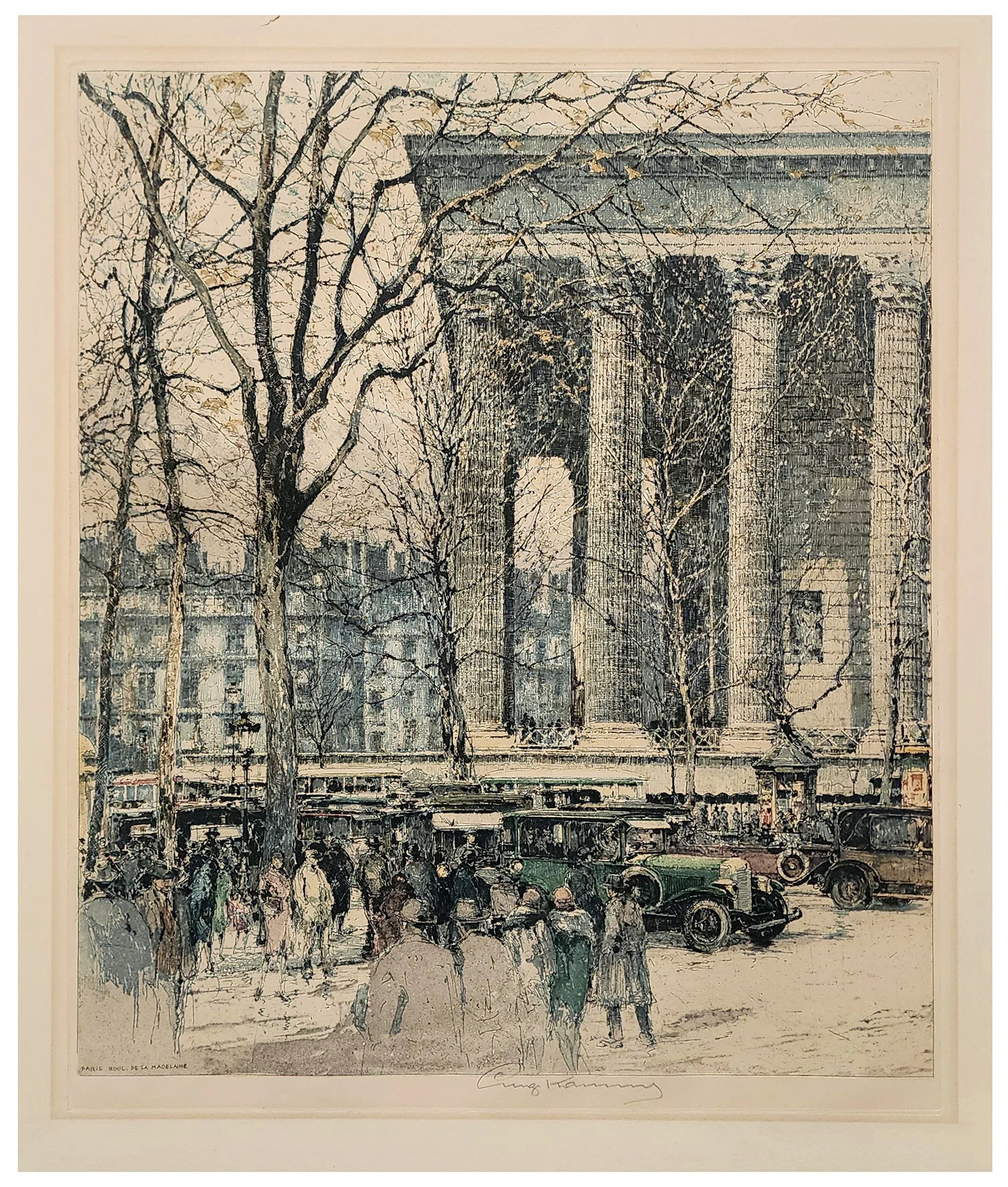 Pencil signed by the artist in the plate mark margin below the image center: Luigi Kasimir. Titled in the image lower left corner: PARIS BOUL, DE LA MADELAINE.